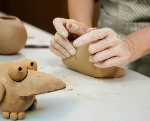 Unterstützung bei der Durchführung eigener Projekte unter Anwendung verschiedener Modelliertechniken, inklusive Vorbereitung für den Brand im Keramikofen.