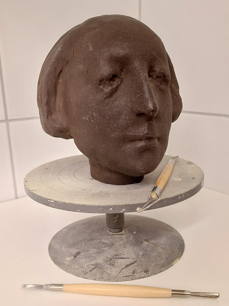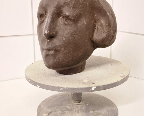 2. Erlernen zusätzlicher Abformtechniken (Negativform/Positivform). Dazu gehört die Technik der verlorenen Form: Ausgehend vom Tonmodell wird ein Gipsnegativ erstellt, aus dem anschließend ein Gipspositiv gefertigt wird.